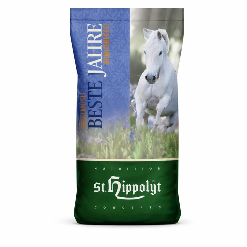 St.Hippolyt krmivo pre kone – Moderné müsli, bohaté na vlákninu vhodné pre citlivé a staršie kone, a pre šetrné vykŕmenie vychudnutých koní. Potreba energie sa všeobecne s vyšším vekom koní znižuje, pretože je od nich požadované menej výkonu. Niekedy bránia vyššej záťaži zdravotné dôvody. Táto nižšia potreba dávky energie však nesmie spôsobiť, aby sa koňovi znížil aj prísun živín, predovšetkým stopových prvkov. Často majú staršie kone problémy so zubami a nedokážu tak kvalitne rozomlieť klasické jadro. Aj to môže byť dôsledkom častého chudnutia starších koní.